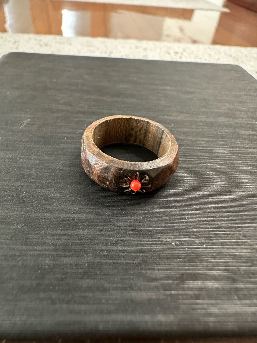 - S-080-5 沈香木 指輪 リング 日月星彫り 16号