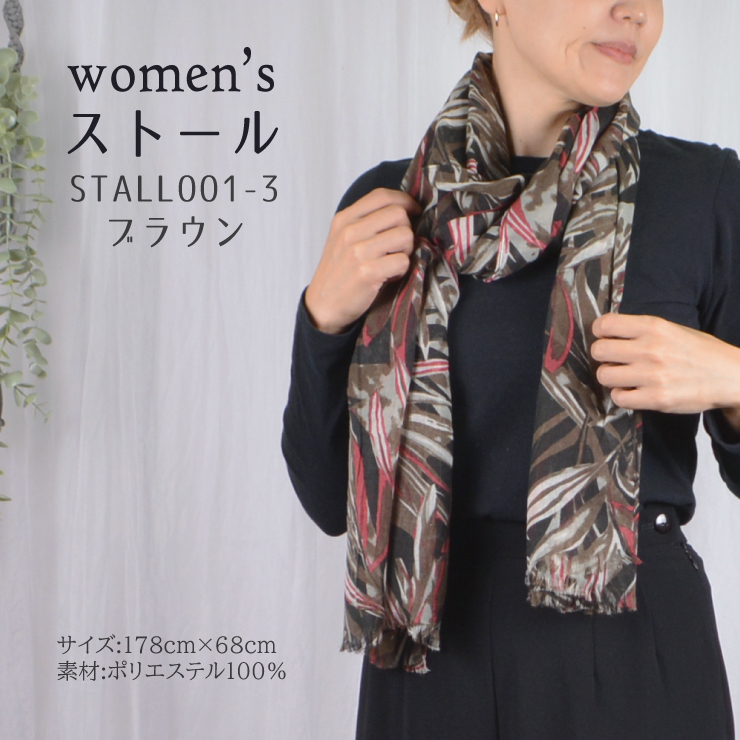 > 送料無料!! ストール ブラウン◇STALL001-3◇新品 レディース 女性 薄手 薄地 春 秋 ショール コーデ かわいい おしゃれ プレゼント Z1