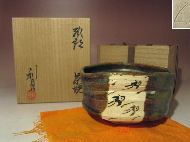 - ※即決※ 若尾利貞 織部茶碗★味わい深い魅力的な景色★u458