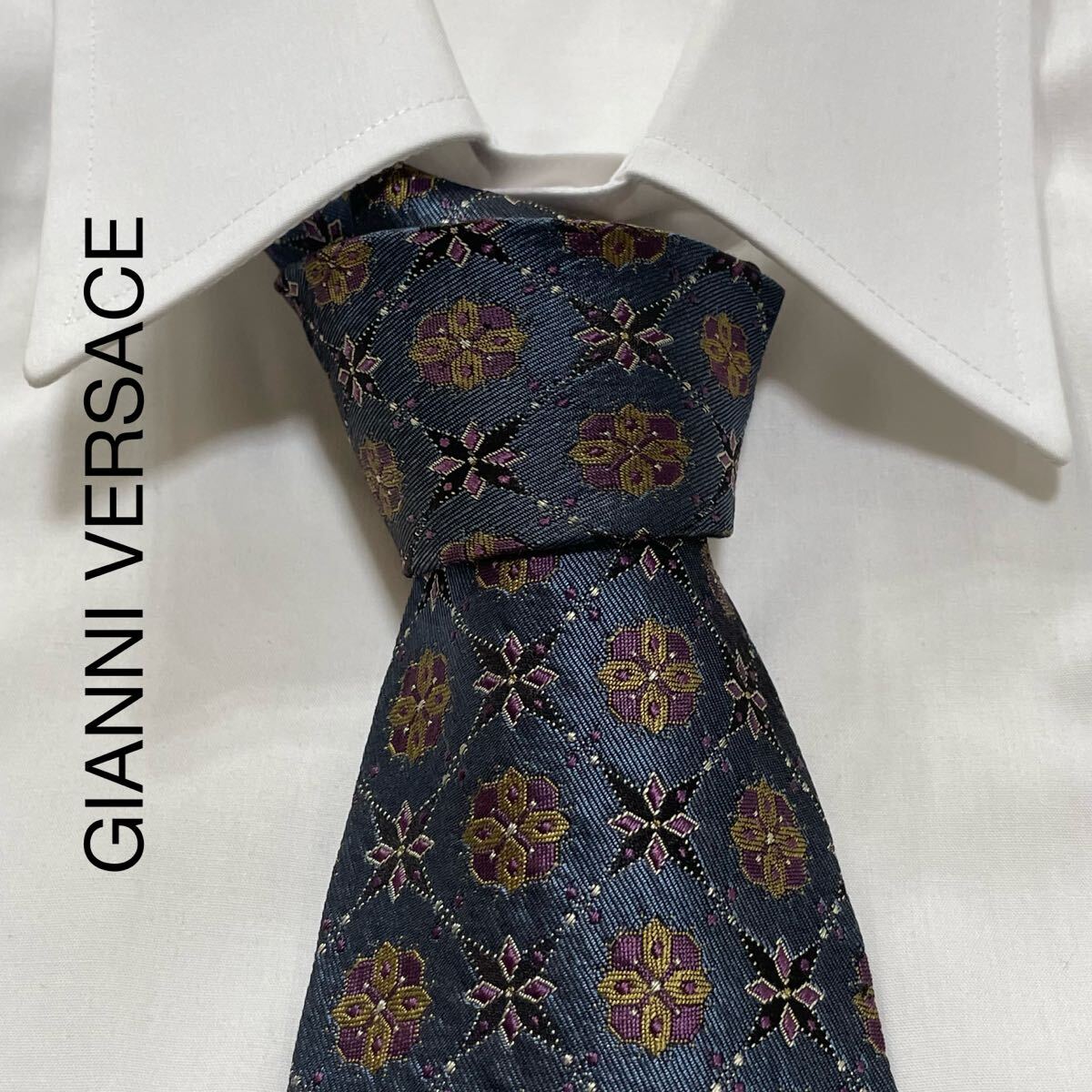 - GIANNI VERSACE ジャンニヴェルサーチ パターン柄 ジャガード デザイン シルク ネクタイ ネイビー TG1220