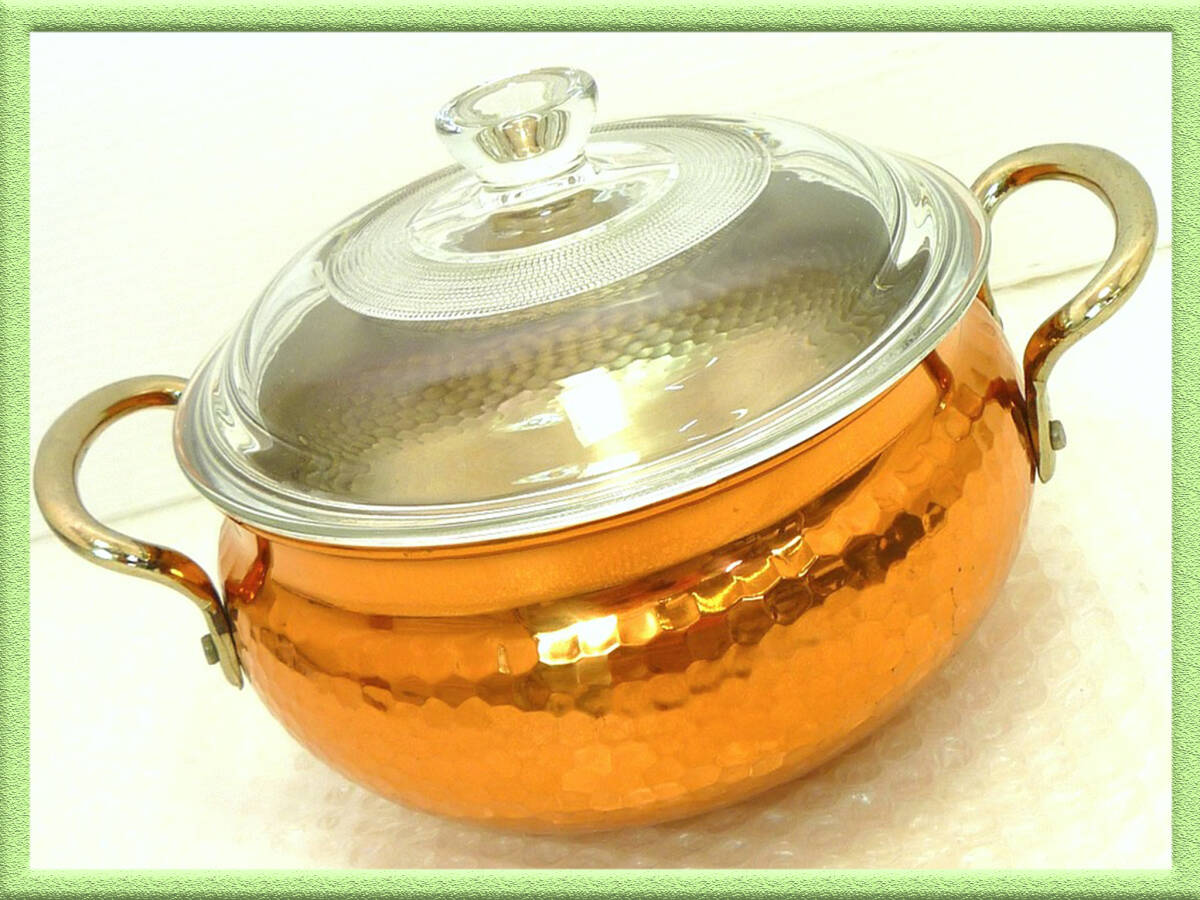 - 純銅 両手鍋 径17cm 調理器具 鍋 純銅製鍋 銅製 カレー鍋 ガラス蓋 煮込み 料理 シチュー 便利 綺麗目 美品 料理上手 お買得 必見 注目