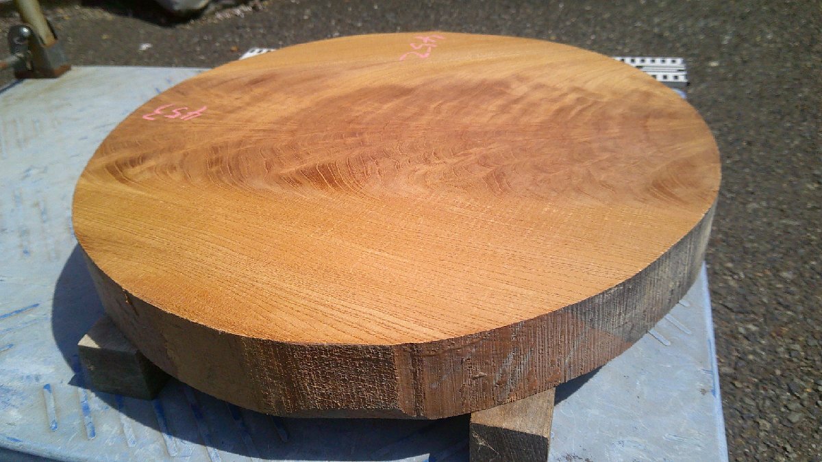 - 17-250 分厚い老木欅(ケヤキ)赤身杢の乾燥丸材(尺5寸)・・・丸盆・大名盆・皿・テーブル・ロクロ・挽きもの