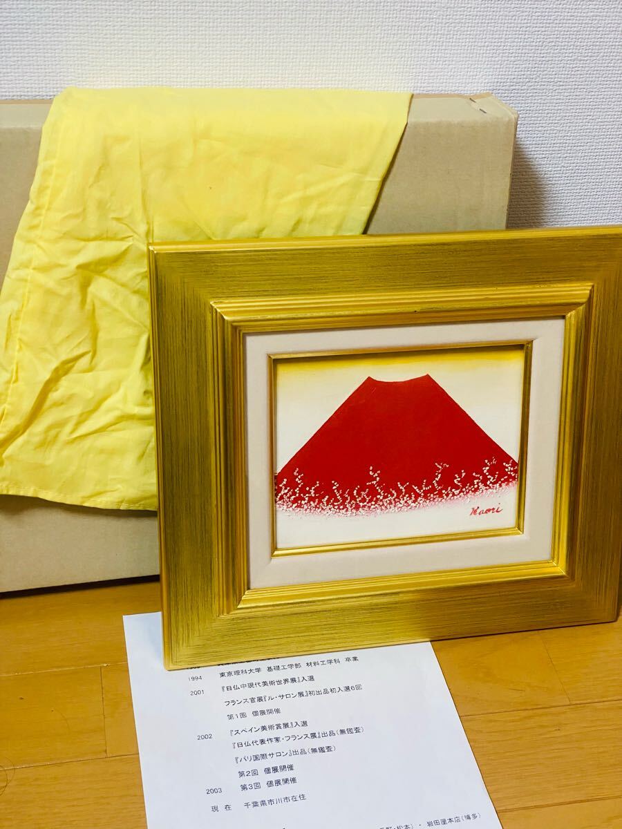 - 真作 油彩画 渡部香 【彩桜 赤富士】 F0号 富士山 風景画 壁掛け 額縁 額装 インテリア 縁起物