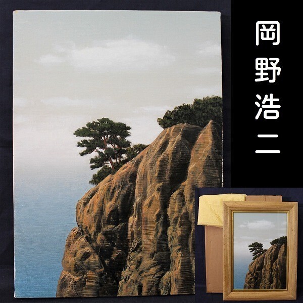 - 【真作】 岡野浩二 「崖と松」 油彩8号 風景画 写実 リアリズム人気作家 C770