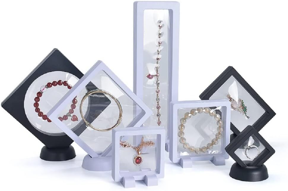 - WY Groceries コインのディスプレイボックス ルースケース 3Dフローティングフレーム スタンド付き (正方形-ホワイト7*7*2cm)
