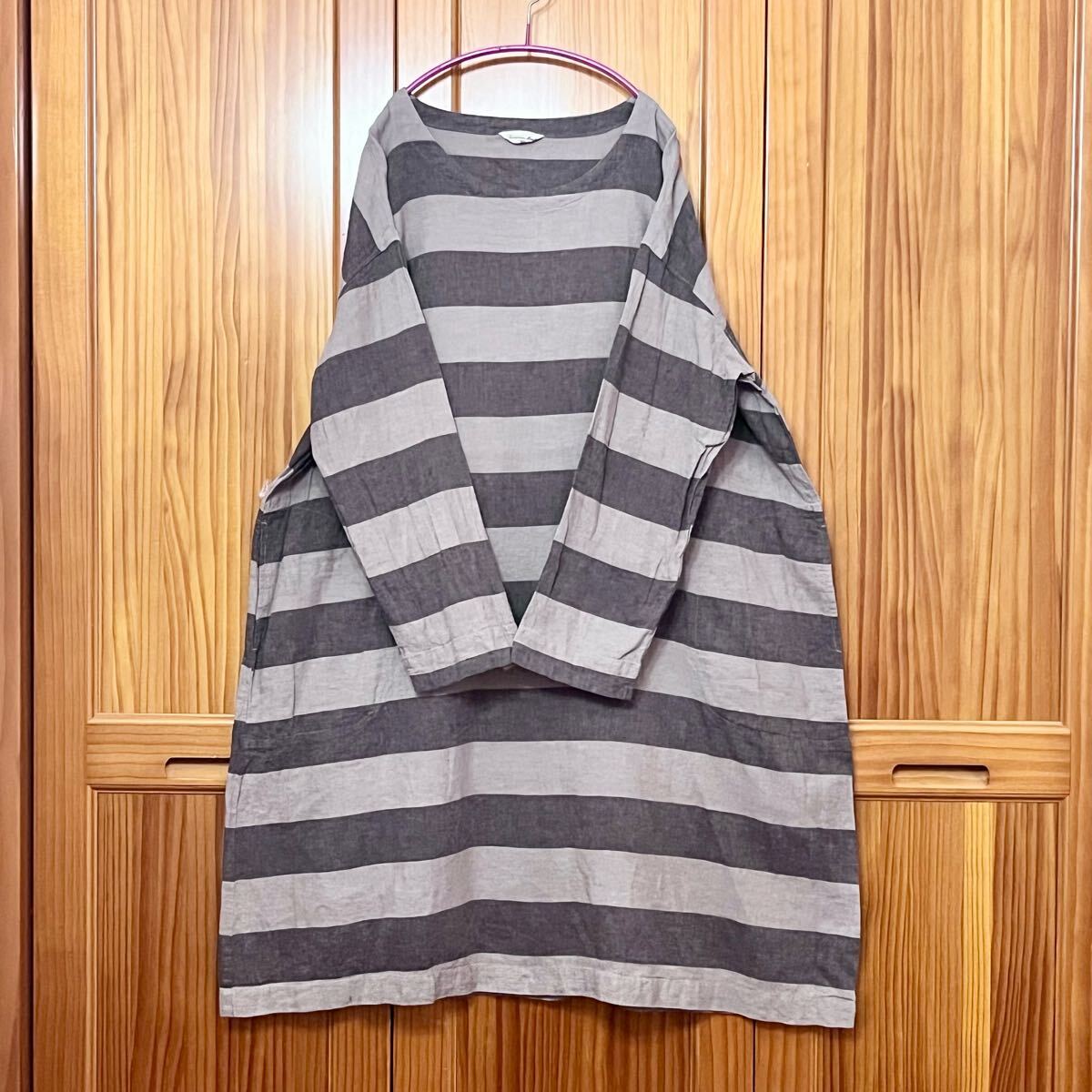 > 送料無料 SM2 サマンサモスモス リネン コットン ボーダー ワンピース Mサイズ ゆったり ドロップショルダー