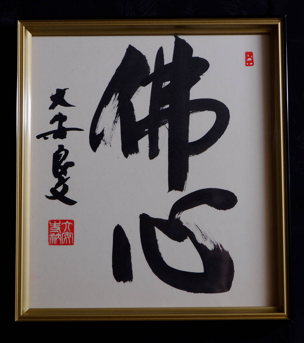 - 【おすすめ 額入色紙 極美】大安寺貫主 河野良文 染筆「佛心」タトウ、外箱有 おまけ付き 南都七大寺 高野山 真言宗