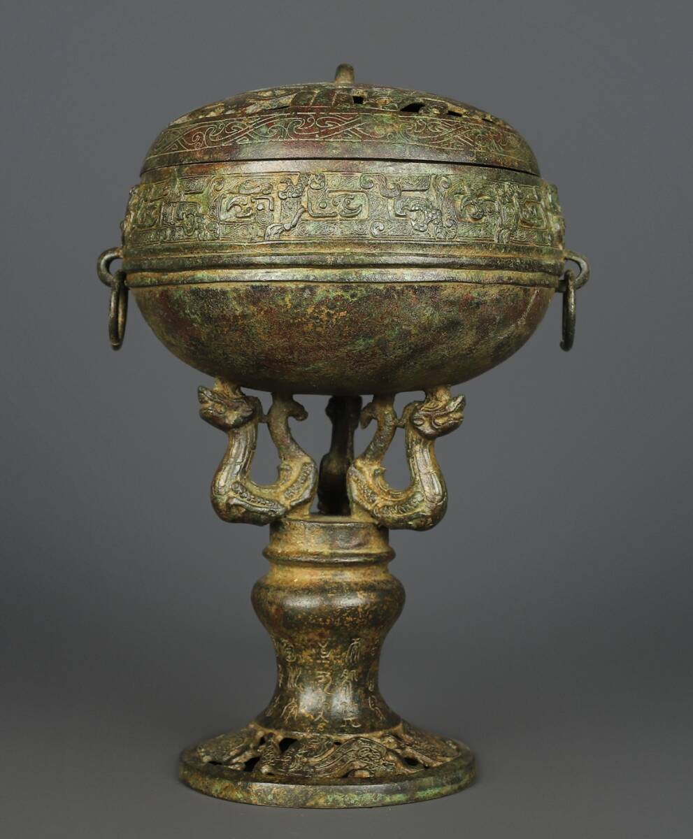 - ◆旧家蔵出◆古美術 中国古玩 漢代 古銅製 青銅器 銘文 三鳥盖鼎 細密細工造 置物 擺件 古賞物 骨董 時代物 A19