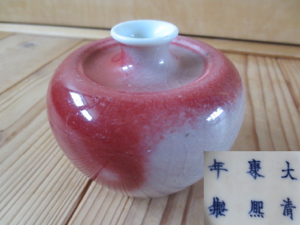 - 【艸】 辰砂 水孟 小壺 大清康燕年製 中国古玩 幅9.3 7feb2