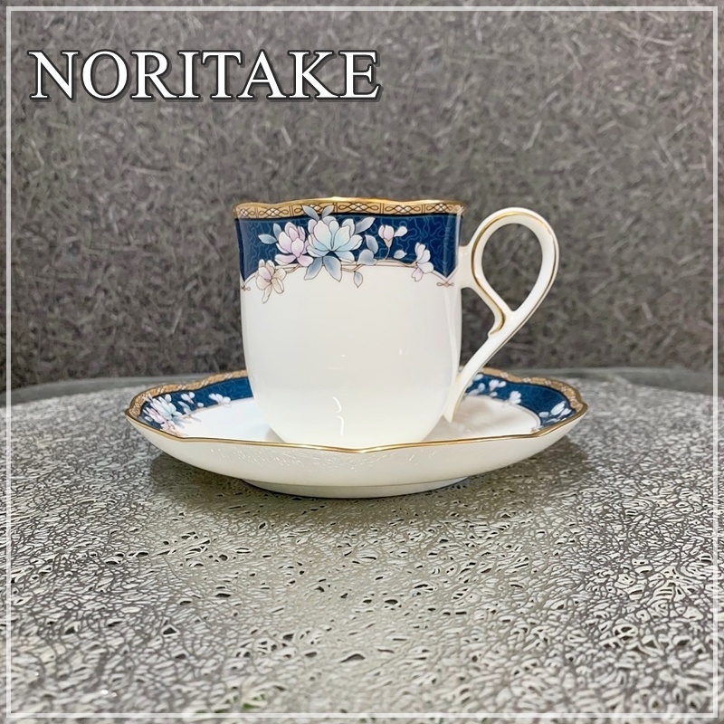 > 【福岡】NORITAKE ノリタケ カップ&ソーサー SANDHURST サンドハースト C/S ブルー 金彩 花柄 廃盤【RU0707-4】