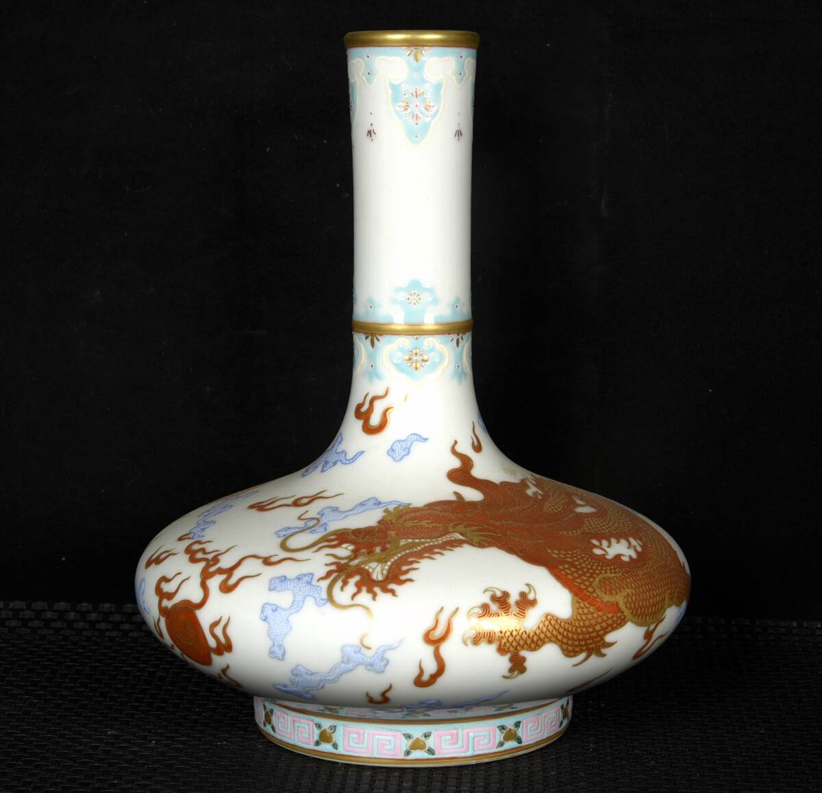 - ▽鴻▽ 清 雍正年製款 琺瑯彩 描金 云龍紋 扁肚膽瓶 古陶瓷品 置物 古賞物 中国古玩 中国古美術