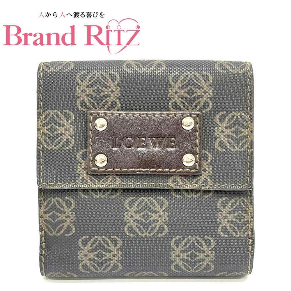 > 中古 ABランク ロエベ Wホック 財布 二つ折り ミニ財布 レディース メンズ アナグラム柄 【送料無料】【三田店】