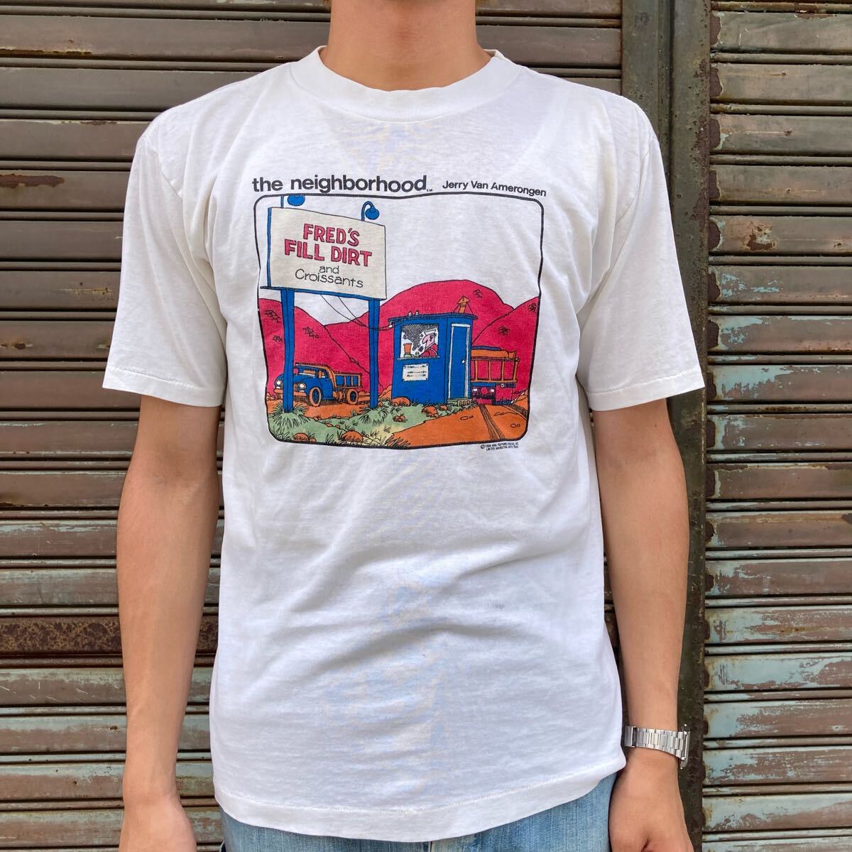 - 80s 86年製 グラフィック Tシャツ USA製 L NATIONAL アート コピーライト jerry van amerongen the neighborhood テキサス 90s