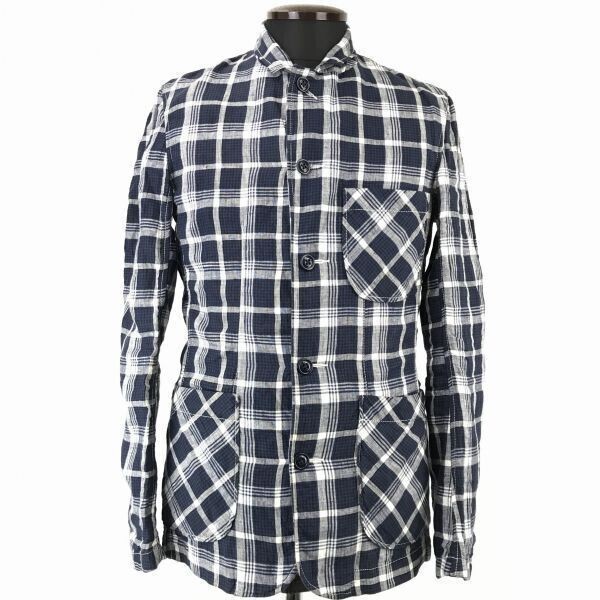 - 送料込/トゥモローランド★チェック柄/麻100%/リネンシャツ【44/XS/紺×白】TOMORROWLAND◆BC477