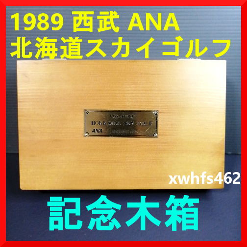 > 即決美品 非売品 1989 西武 ANA 北海道スカイゴルフ 記念 木箱 函館 大沼 ゴルフクラブ 飛行機 木箱 木製 収納 裁縫箱 工具 道具箱 box zak