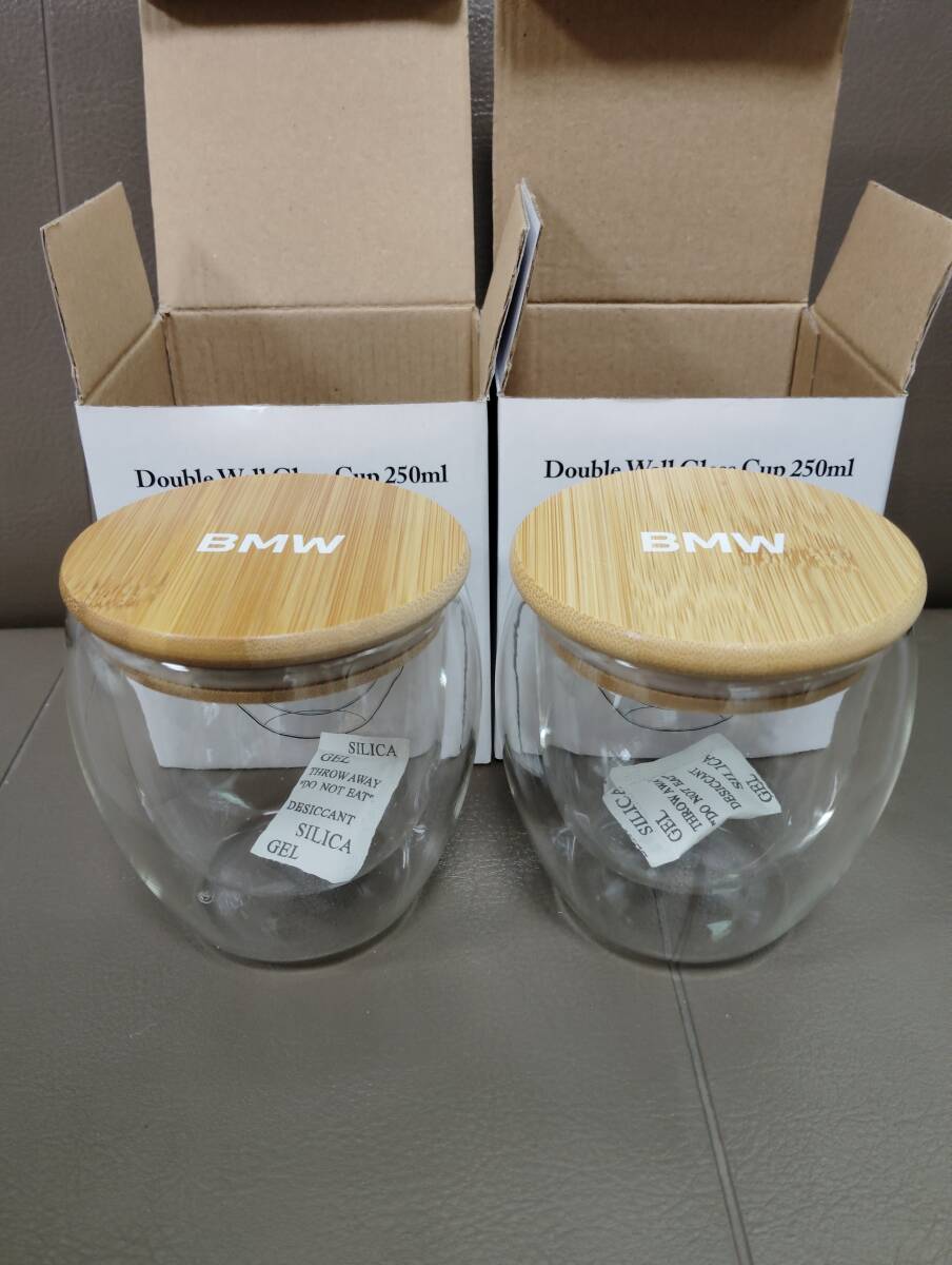 > BMW Double Wall Glass Cup 250ml ダブル ウォール グラス カップ 2個セット 蓋付ダブルウォール耐熱グラス 新品 非売品 正規品 ノベルティ