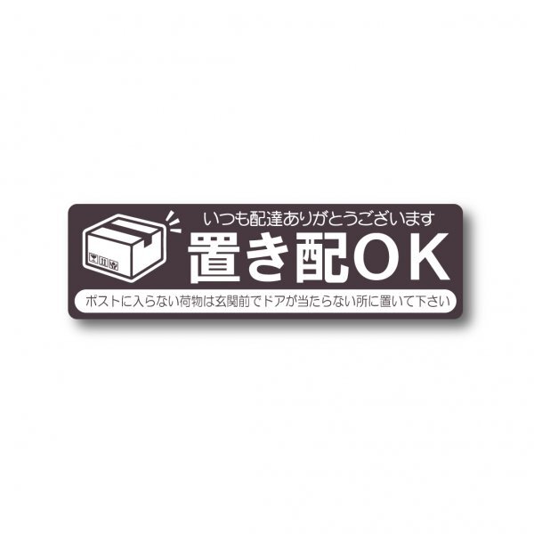 - 置き配OK ステッカー ダークブラウン マットラミネート 新品 高耐候 防水 UVカット 120X35mm 日本製 賃貸住宅 宅配便 置き配OK 玄関前に