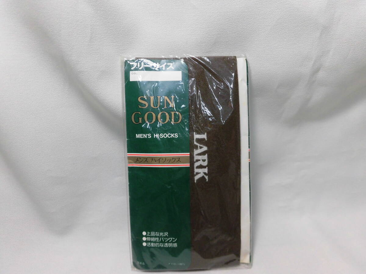 - レトロ 日本製 ハイソックス LARK メンズ 紳士用靴下 ナイロン100% ドレス ビジネス シースルー 薄手 茶系 3694