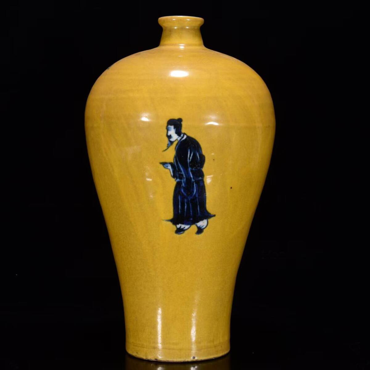 - 『館蔵珍品 元 古陶瓷品 黄釉 青花 人物紋 梅瓶』置物 賞物 貴重物品 収蔵品 中国古美術