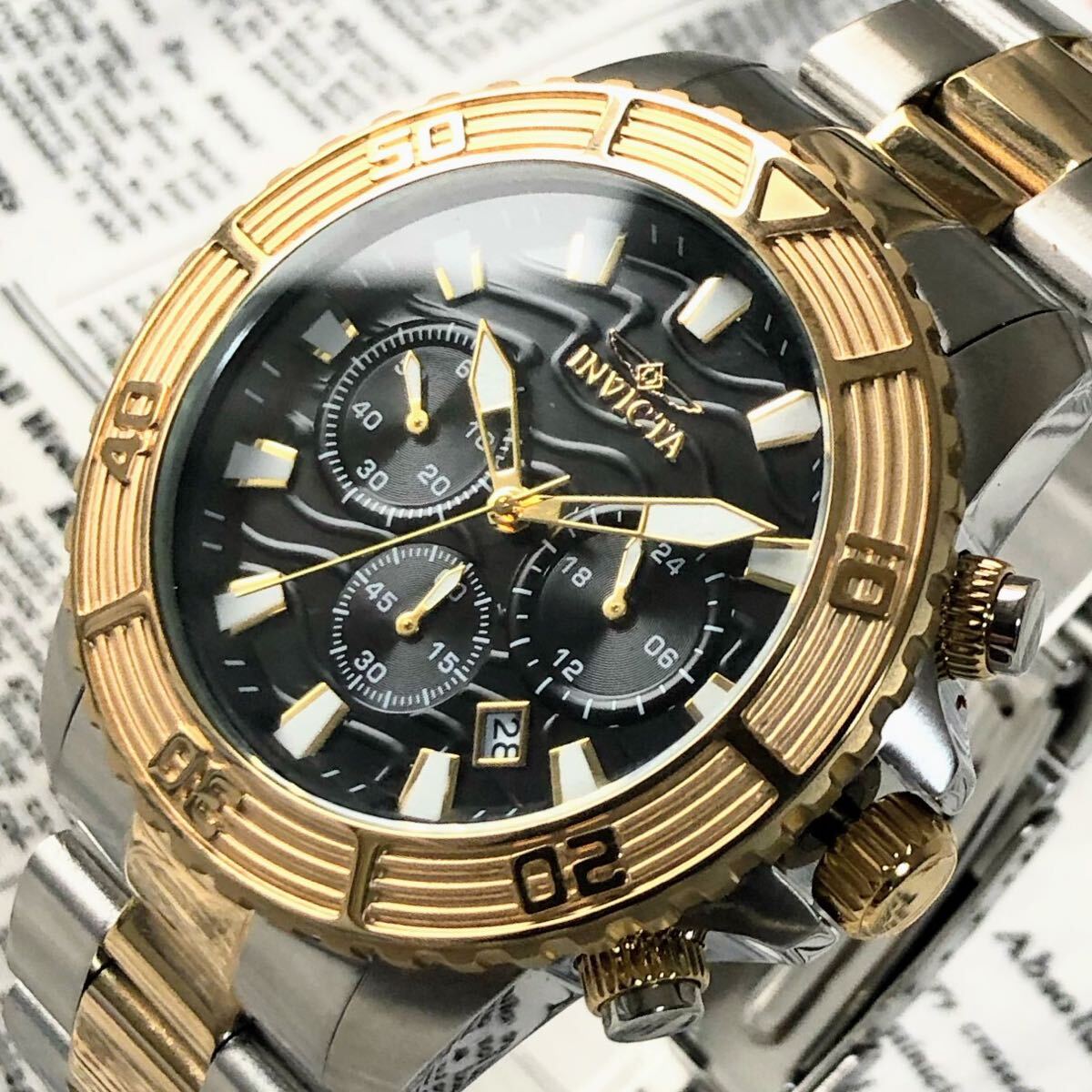 > #3566【お洒落高級感】メンズ 腕時計 インビクタ Invicta クォーツ Quartz 動作良好 ブラックダイヤル インヴィクタ クロノグラフ 黒文字盤