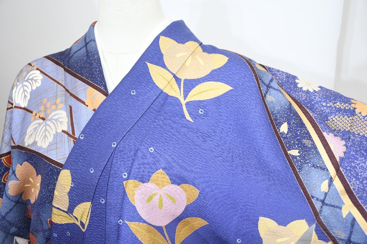 - 小紋 着物 袷 桜 サクラ 金彩 身丈164cm 裄丈65cm ★ kb-6696 桜庭呉服店