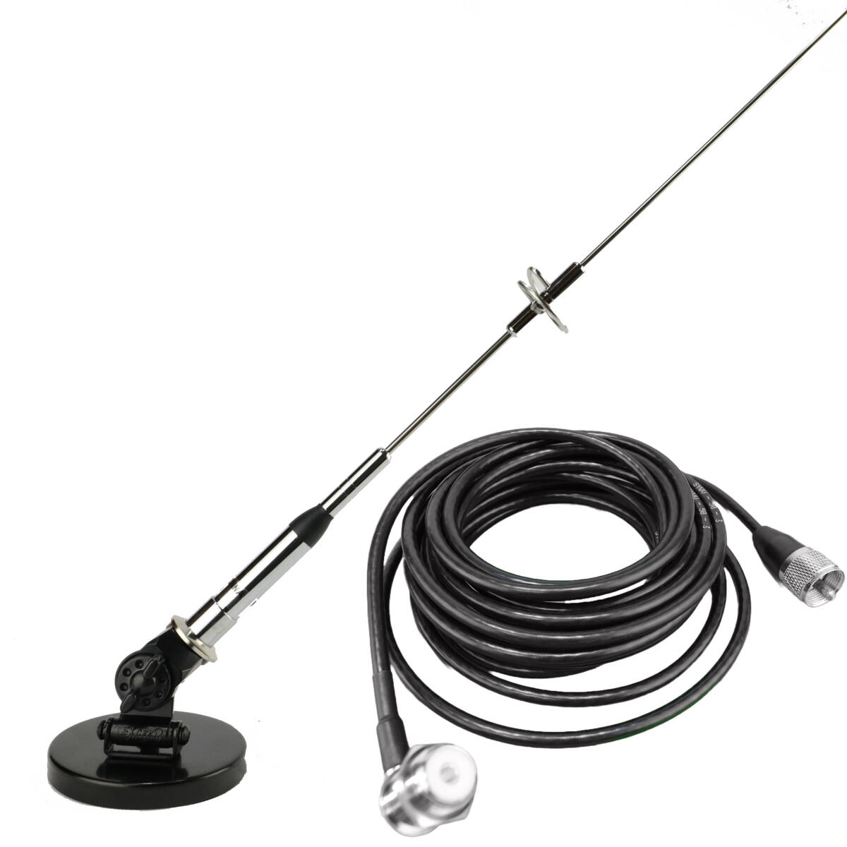 - 送料無料 144/430MHz帯 45㎝ デュアルバンドアンテナ+2軸可動式マグネットアンテナ基台+RG58(3D-2V相当)同軸ケーブル5m MJL-MP接栓付