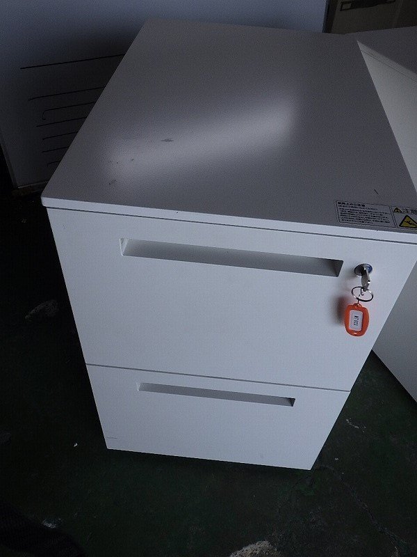 > ●イトーキ(ITOKI) CZR-046MDCB-W9 スチール二段スリムワゴン 白 鍵付き 脇机 袖机 引取り可【B0809W2】