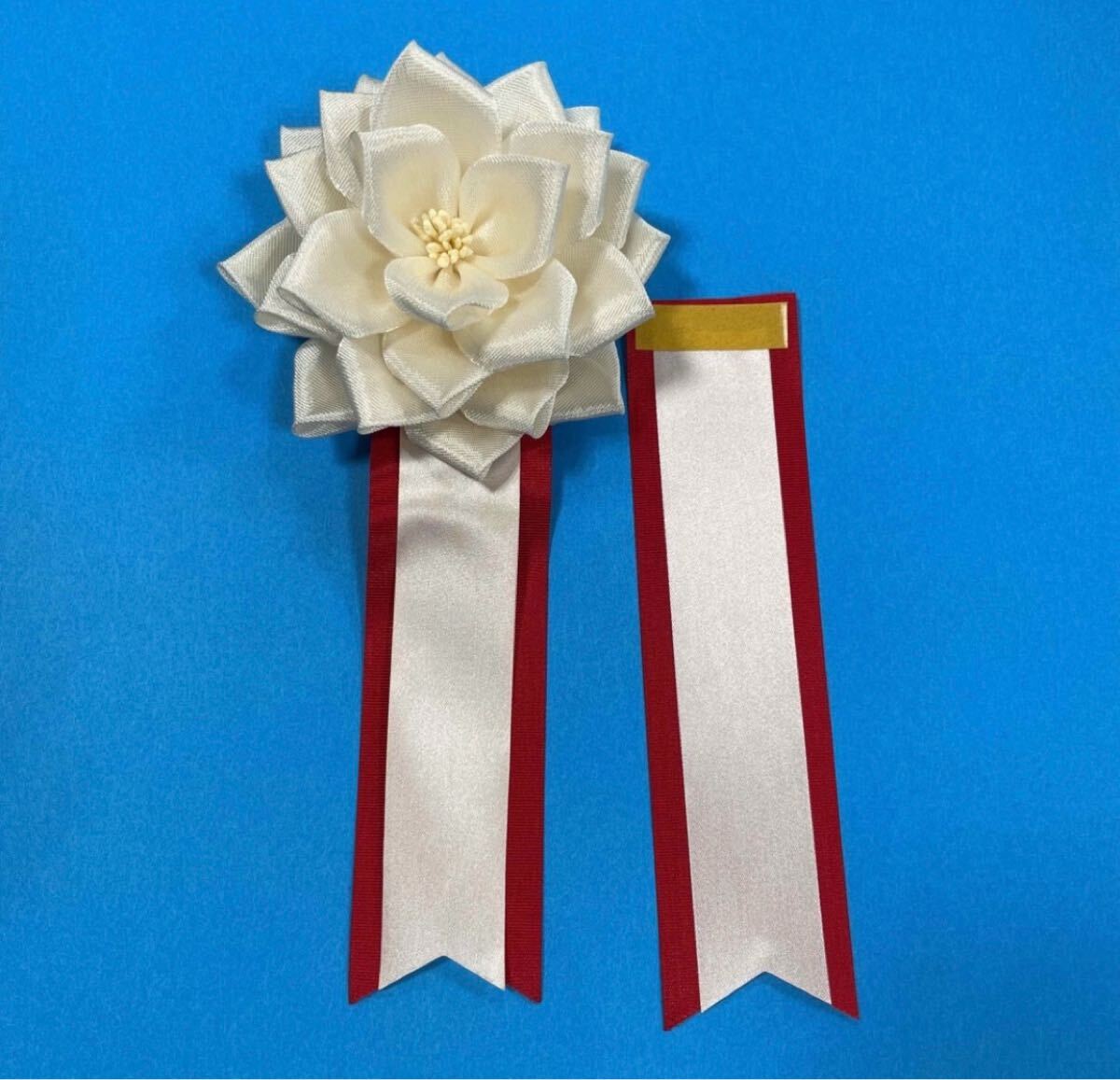 - リボン章 小?中? 白 1個 紀章、胸章 式典・イベント・セレモニー・祝賀会・入学式・卒業式・運動会・竣工式 タレ付き
