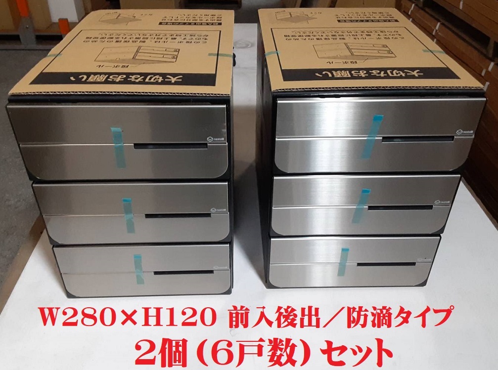- 【 ポスト 】 「 ナスタ 」 W280×H120 前入後出/防滴タイプ「 KS-MB6402PU-3L-S 」2個(6戸数)セット① キズ、汚れ有