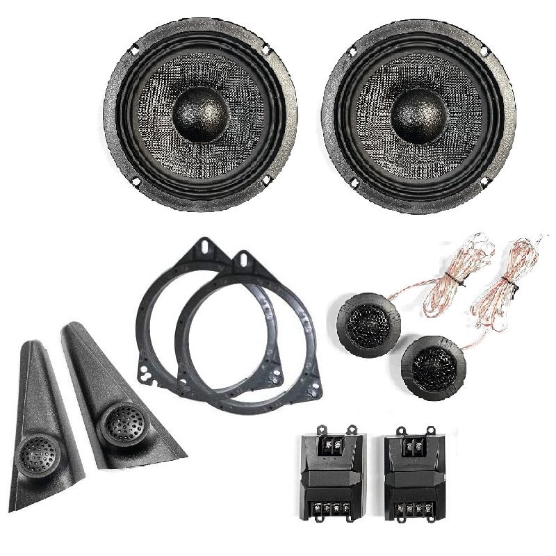 17cmスピーカー左右セット、ツイーターパネル、ツイーターのセットです。ツイーターは専用パネルに組み込んだ状態でお届けしますので、すぐにお使いいただけます。窓に干渉させないためにバッフルボードをご使用ください。