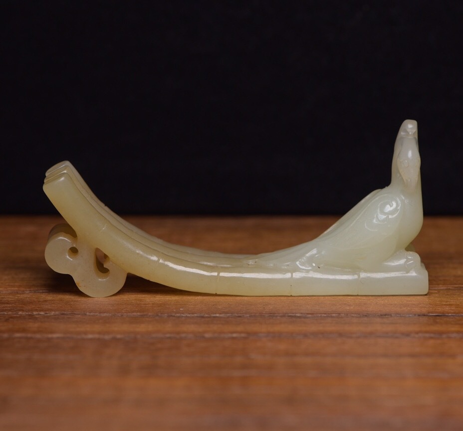 - 【仁】『和田玉製・細密彫・鳳鳥・置物・賞物』極細工 古賞物 中国古玩 古美術 古美味