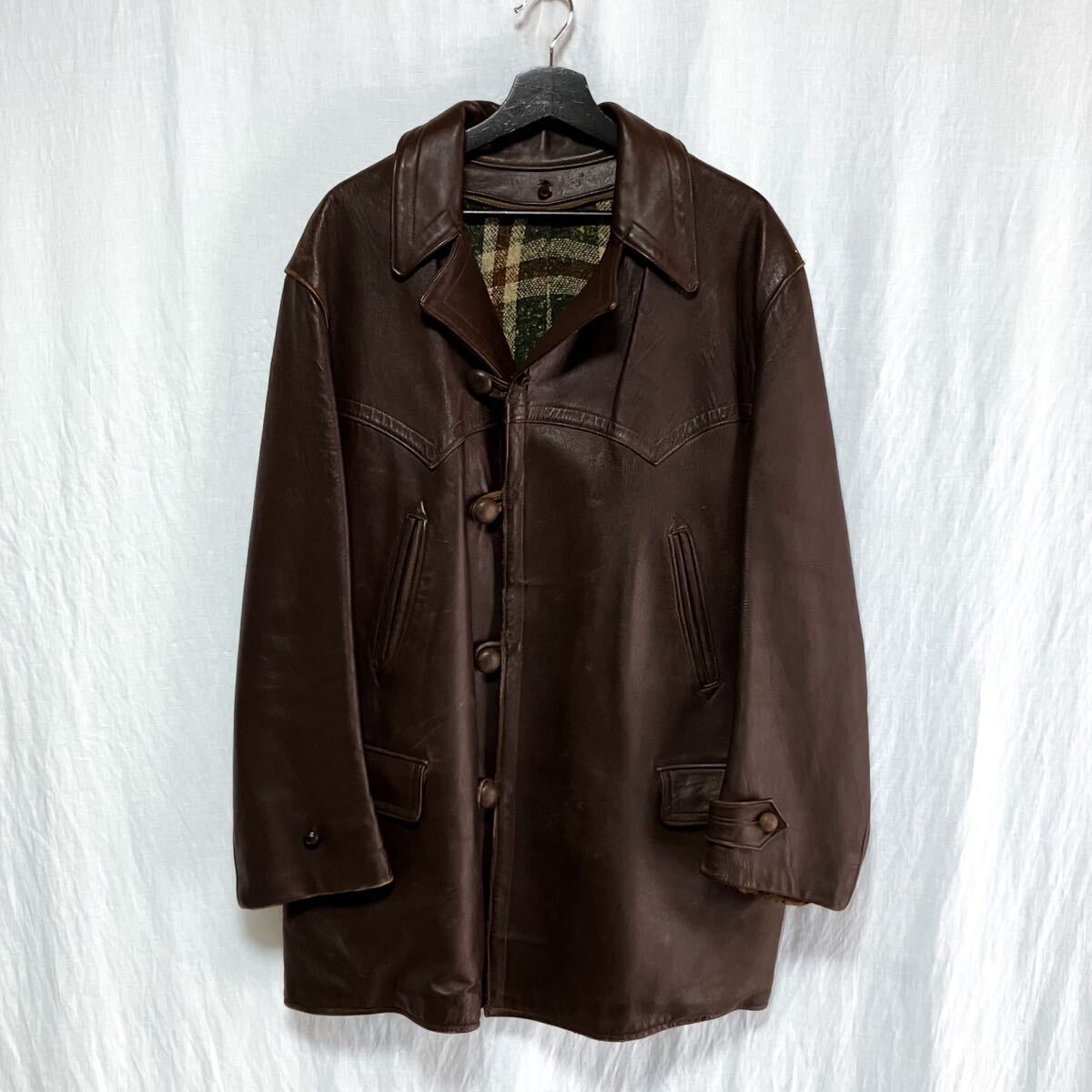 - ユーロ ヴィンテージ ダブルブレスト レザーコート L〜XL ブラウン ジャケット カーコート ユーロ コルビジェ フランス軍 イギリス軍