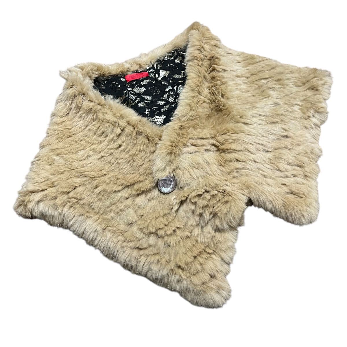 - 【推定リアルファー】rougeloup ルージュルー ファーマフラー ティペット 襟巻き ベージュ 毛皮