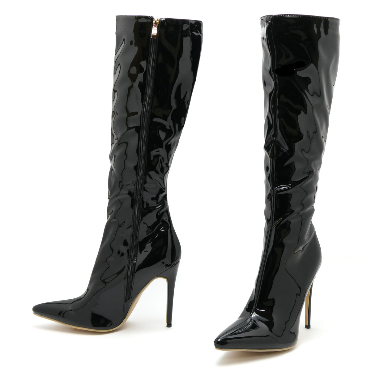 - 新品 大きいサイズ ロングブーツ ブラック 27.5cm 137321-45 エナメル調 ハイヒール