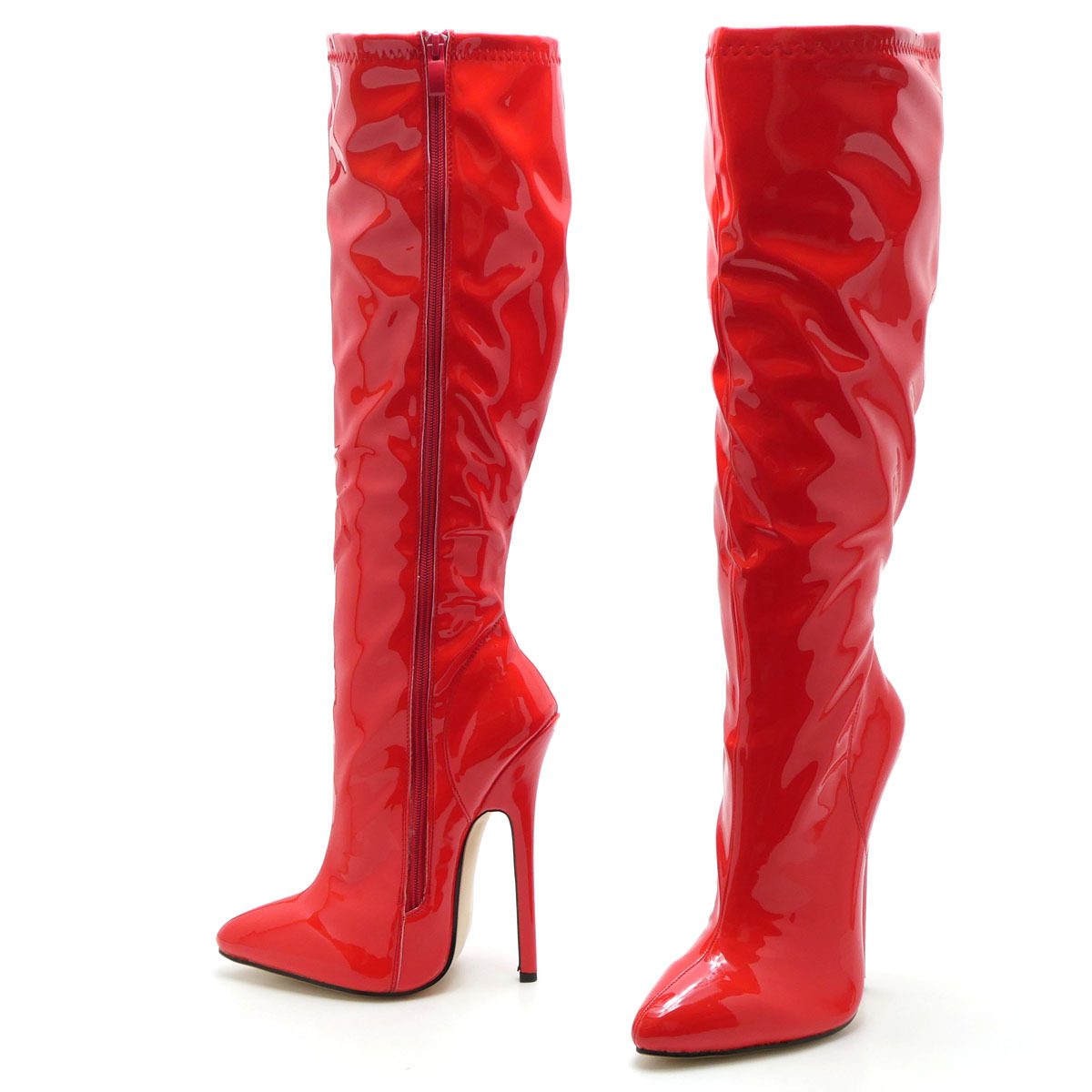 - 新品 大きいサイズ ロングブーツ レッド 27cm 137325-44 17cmヒール エナメル調 ハイヒール