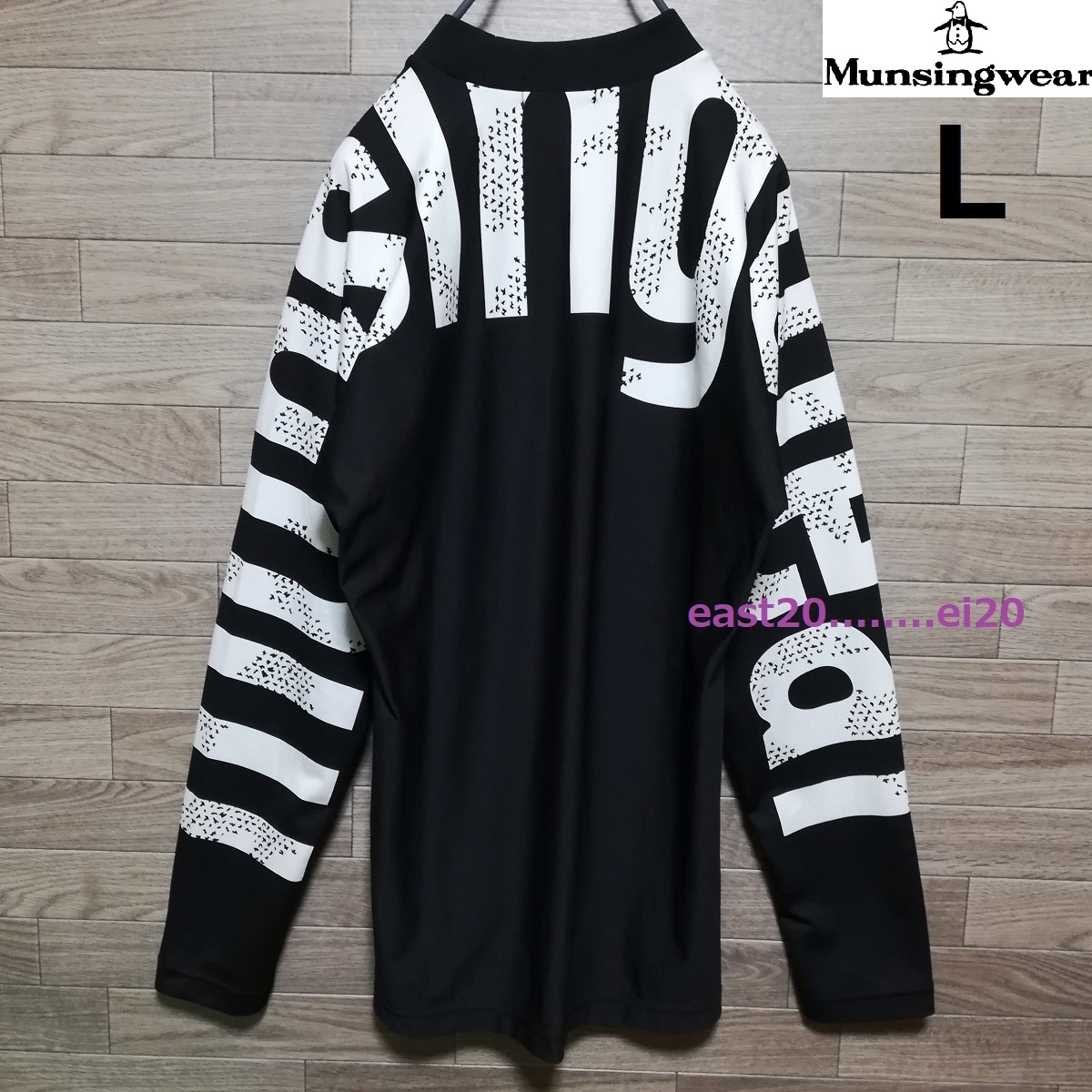- Munsingwear マンシングウェア ビッグ ロゴ メンズ ゴルフ ウェア ハイネック シャツ L 黒 サンスクリーン アウトラスト デサント 送料無料