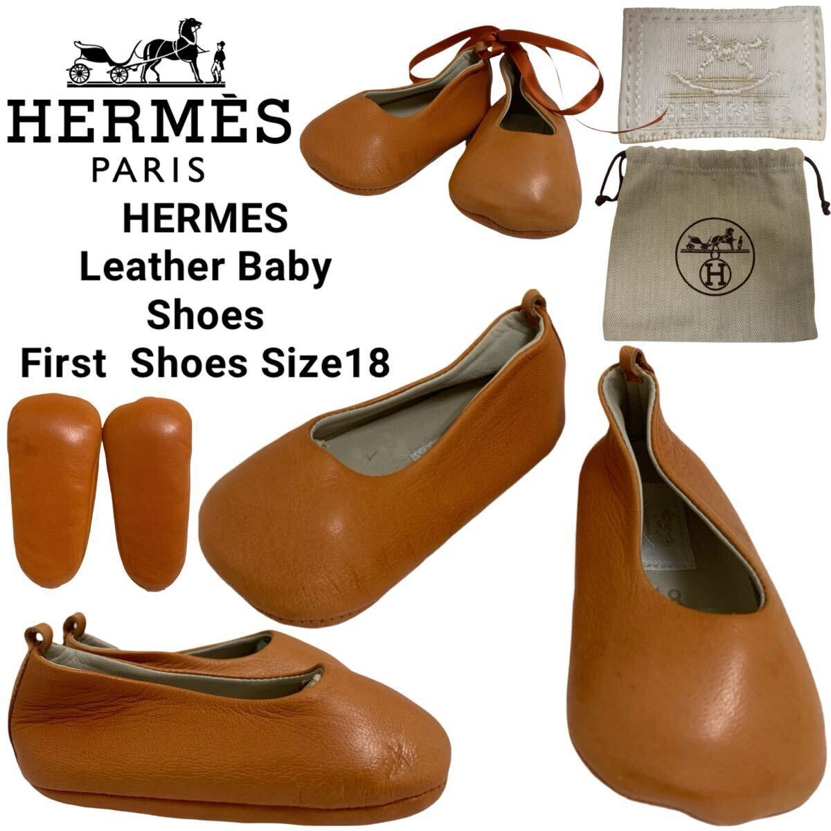 - HERMES エルメス レザー ベビーシューズ レザーファーストシューズ 靴 SIZE18 オレンジ系 オレンジ系ブラウン 保存袋付 リボン アーカイブ