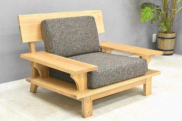 非常に木目の綺麗なタモ材を使用した現代和家具のソファー。