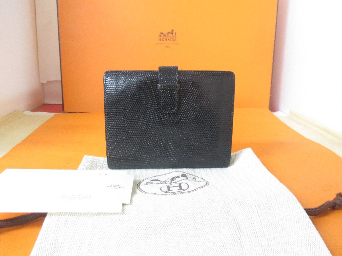 - 本物保証【即決で送料無料】黒/エルメス/ジュラ/リザード/2つ折り/コンパクト/財布/□D刻印/小銭入れ/革製/エルメスの保存袋付属/正規品