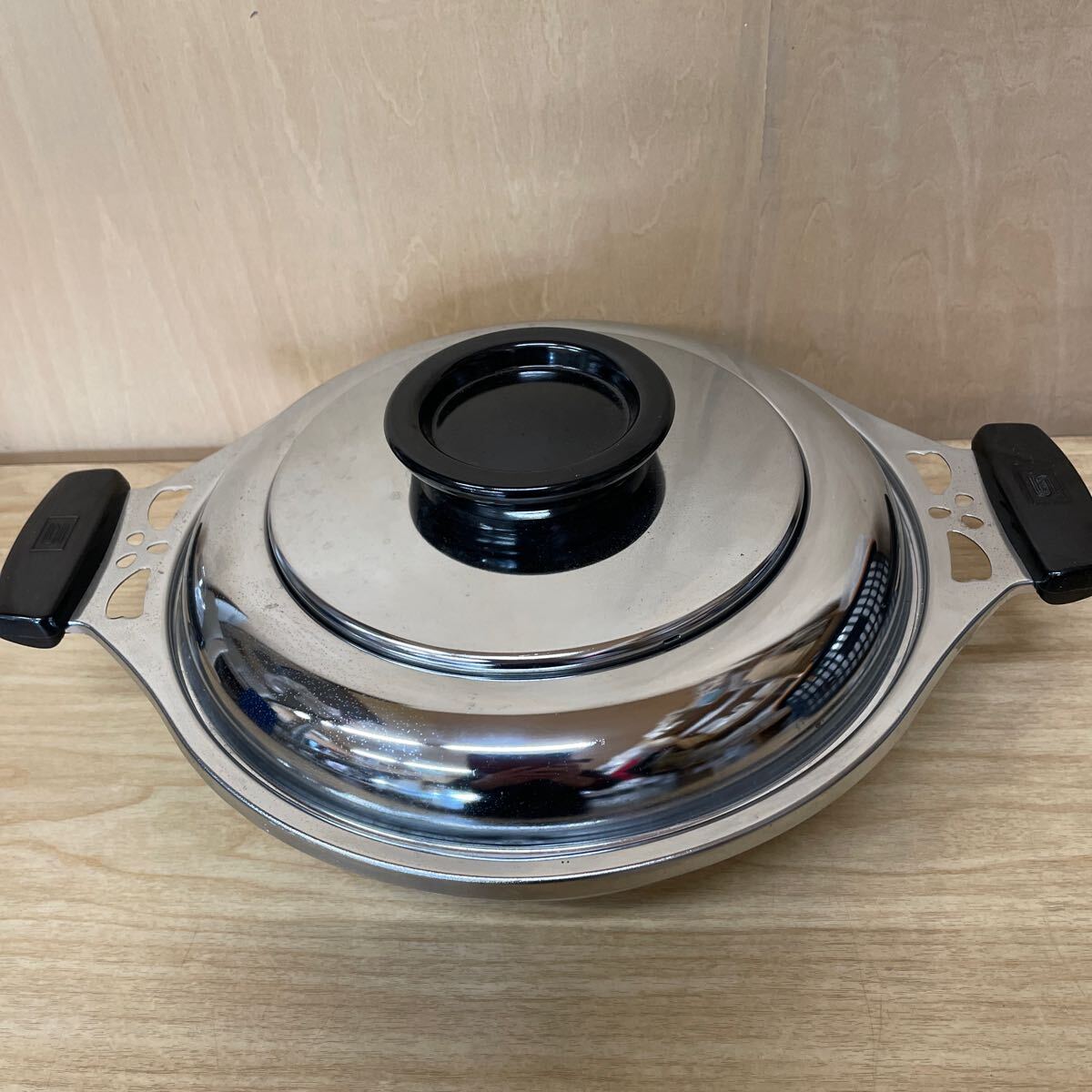 - 天ぷら鍋 藤田金属株式会社 富士 蓋付き フタ 油のとばないフード 約24.5cm 未使用保管品 両手鍋