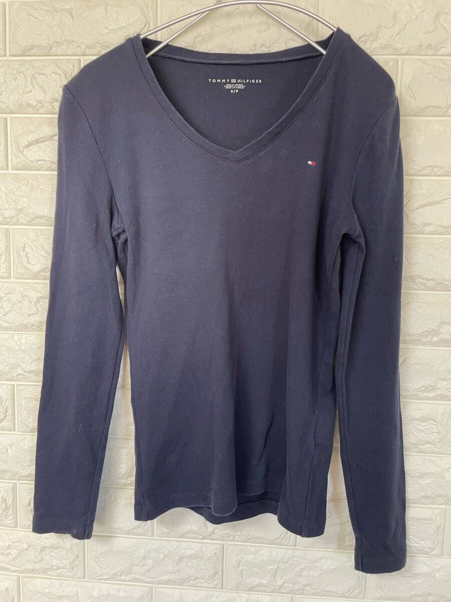 - TOMMY HILFIGER ネイビー Vネック Tシャツ ロンT サイズS
