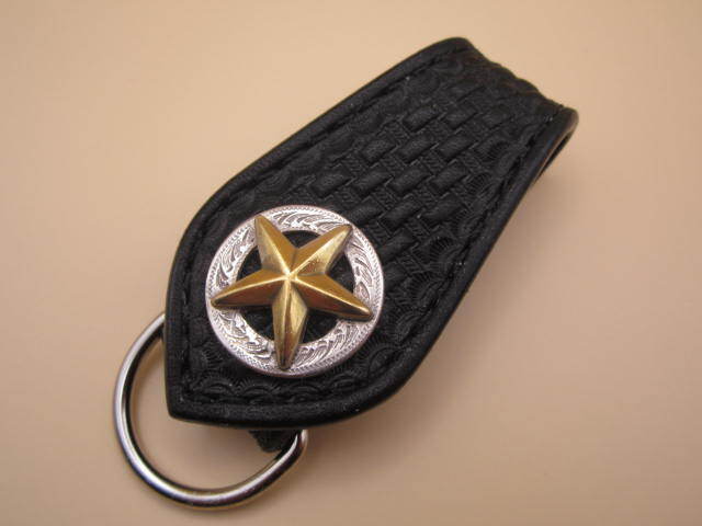 > キーホルダー、キーリング「ウエスタン ブラック」サドルレザー ベルトループ バイカー ロッカー ハーレー シンプル ハンドメイド