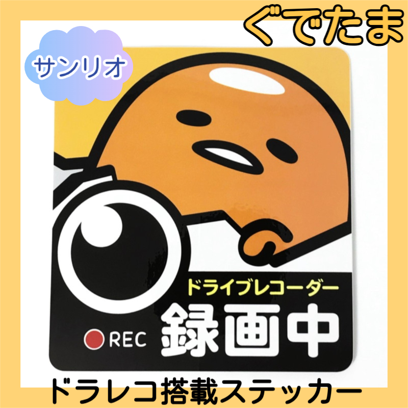 > ■新品■ ぐでたま ドライブレコーダー 搭載ステッカー 車 あおり運転 危険防止 録画中 かわいい シール 運転初心者 自動車 サンリオ G04
