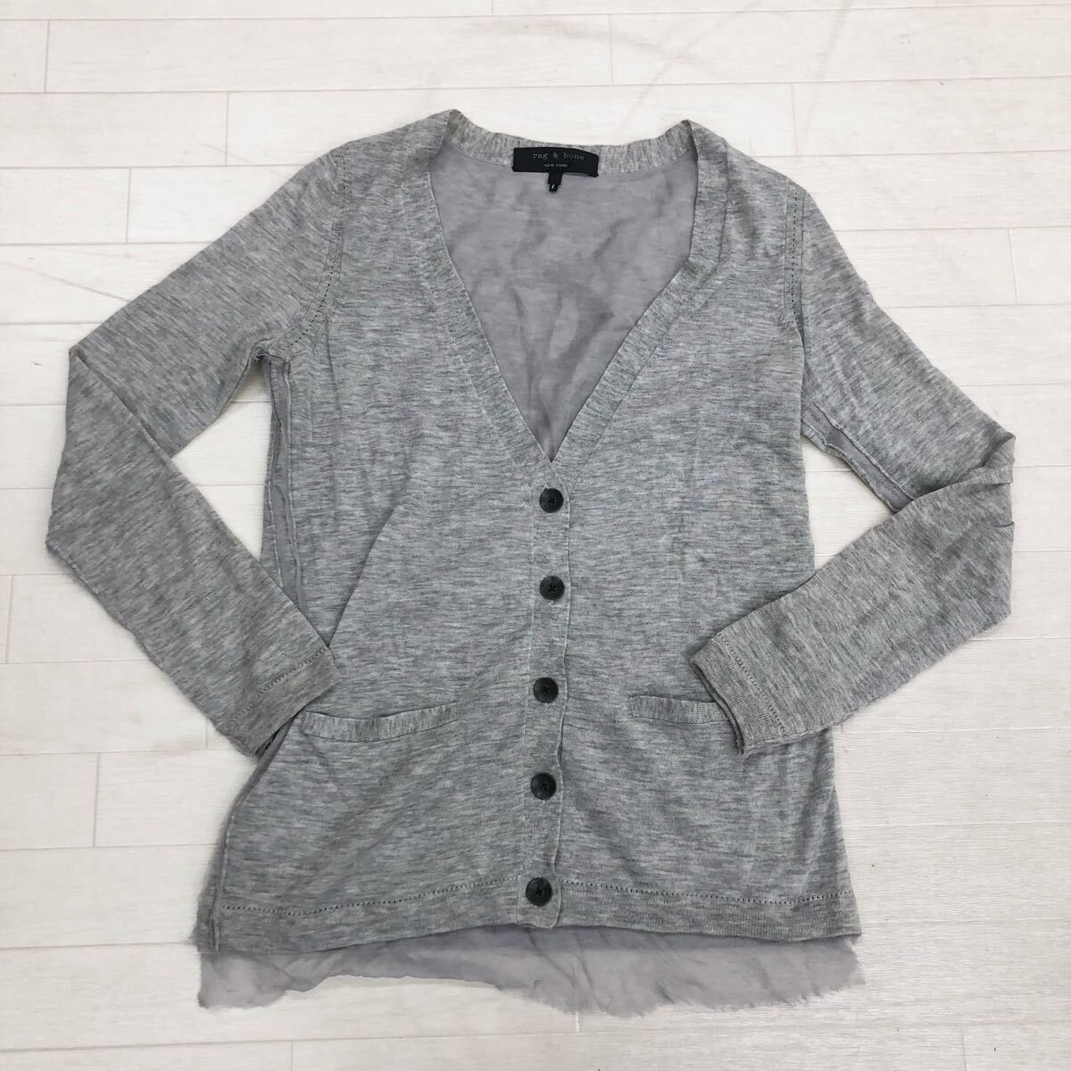 - 1725〓 rag&bone ラグアンドボーン カーディガン レディース サイズXS グレー トップス 上着 薄手ニット シルク混 カジュアル