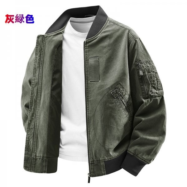 - 新品★未使用 ミリタリージャケット メンズ フライトジャケット ジャンパー ブルゾン アウトドア【LZ-1957】灰緑色【M-4XL選択】