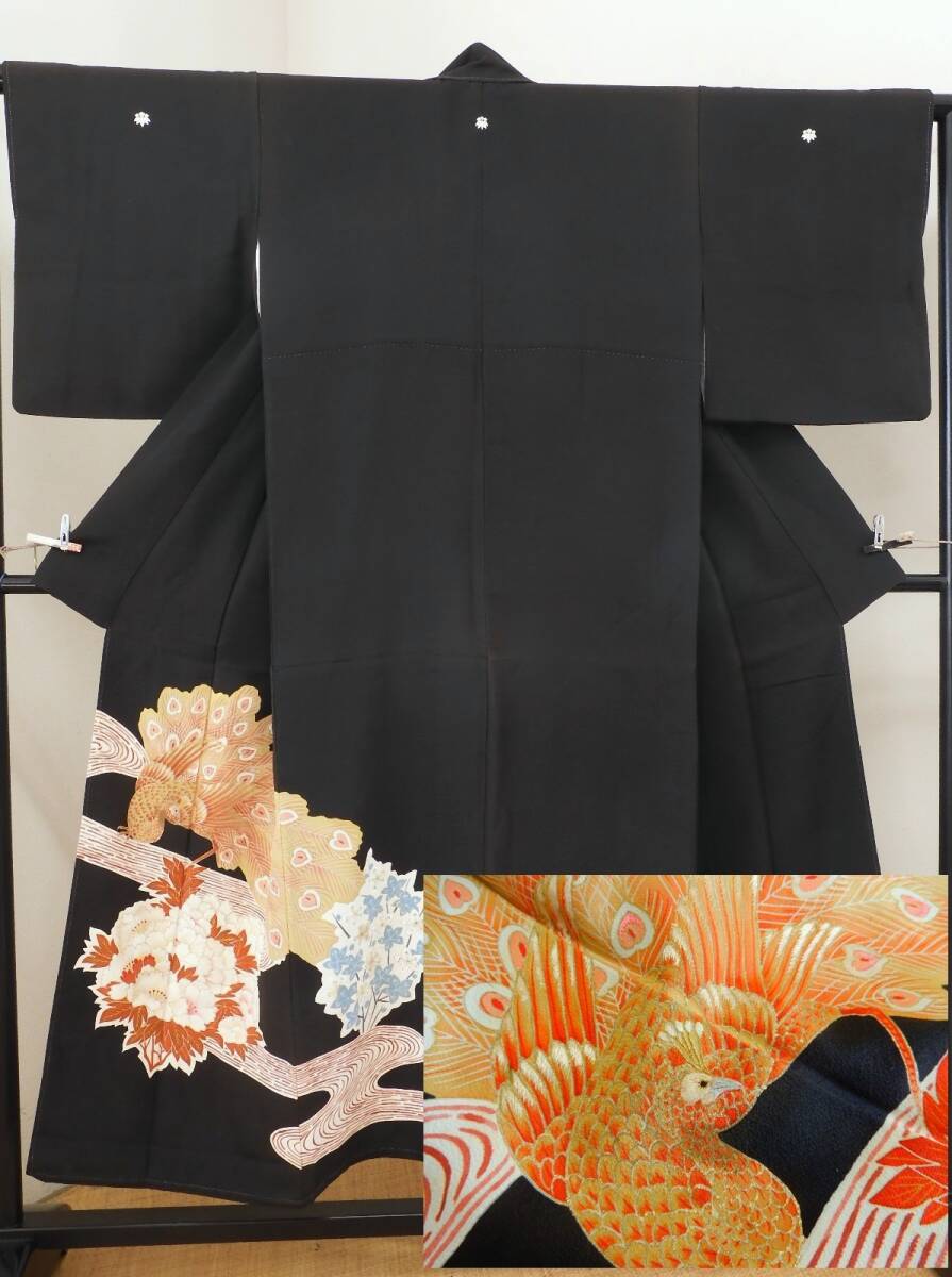 - <銀の斧>正絹・第一礼装・孔雀黒留袖・五つ紋・孔雀・留袖・リメーク用として