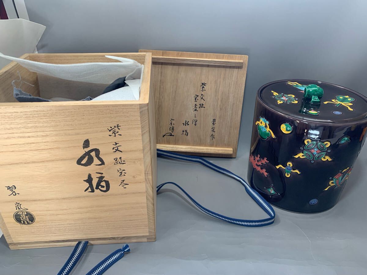- 中村翠嵐 紫交趾 宝尽し 水指 永田宗伴箱書 共箱