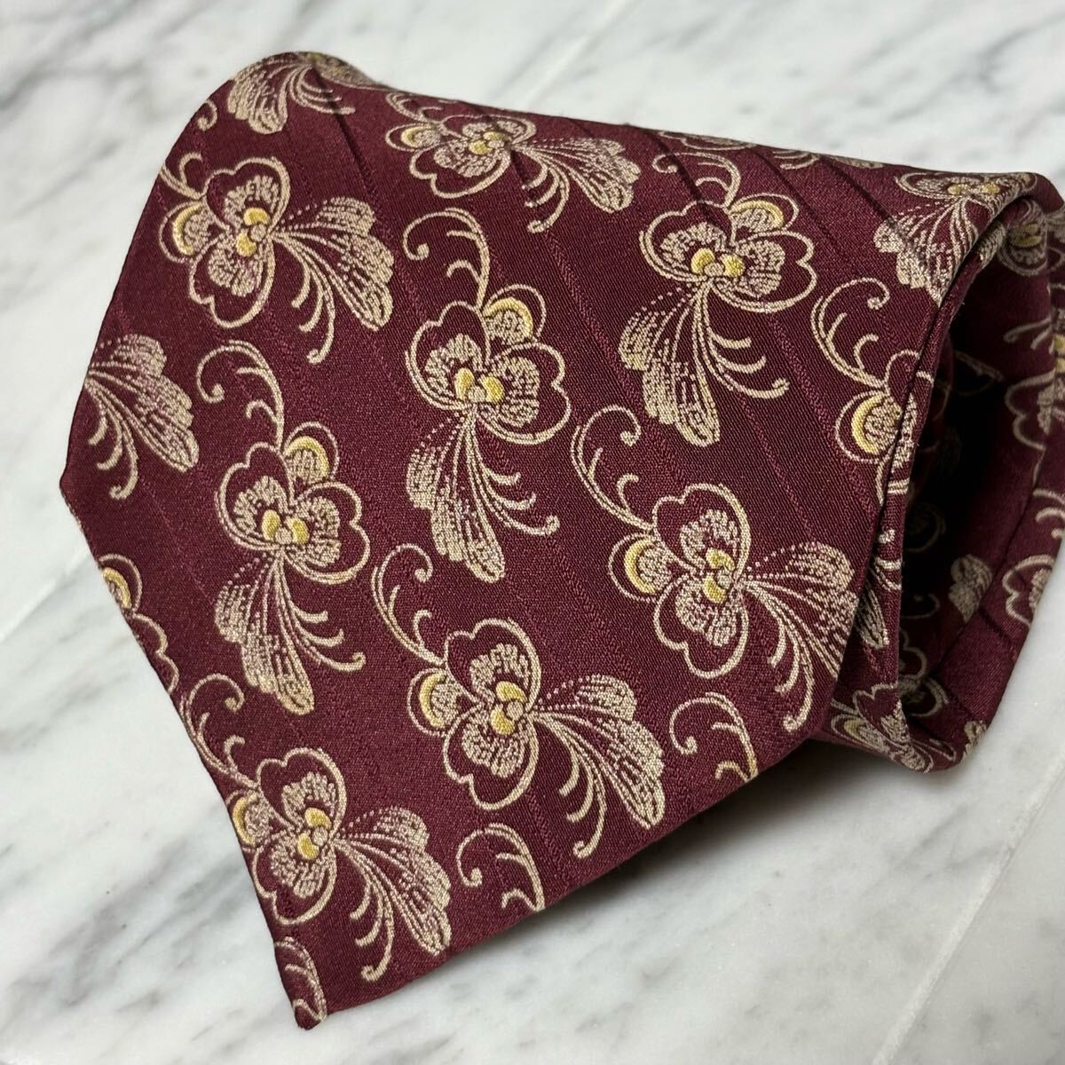 - 999円~ ARMANI ネクタイ レッド ストライプ ボタニカル柄 (R7)