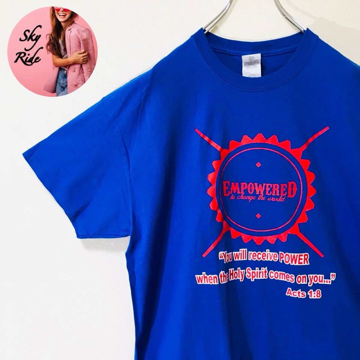 - GILDAN EMPOWERED ギルダン メンズ ビッグプリント ヴィンテージ 半袖Tシャツ ブルー XL ビッグシルエット USA 90's 古着 #TT0170