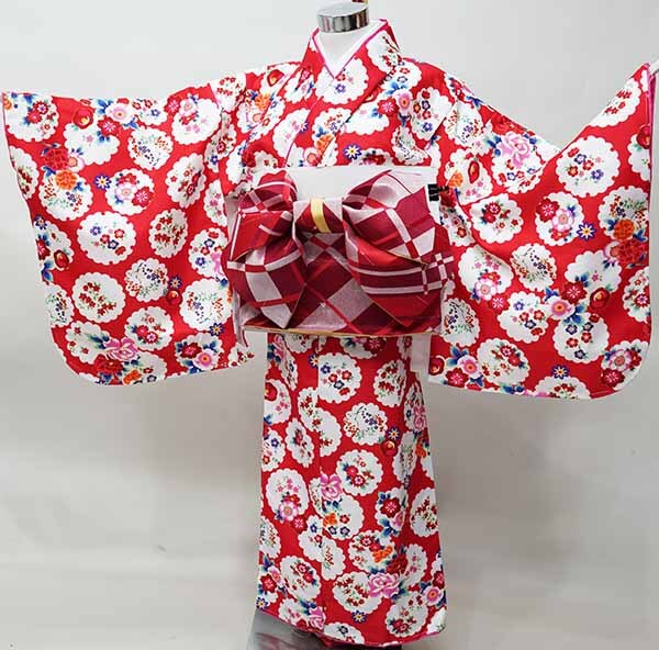 - 着物 ジュニア ワクワク きもの6点セット 女児 女の子 祝着 千都四季 サイズ 150cm 赤色地 新品(株)安田屋 NO41844